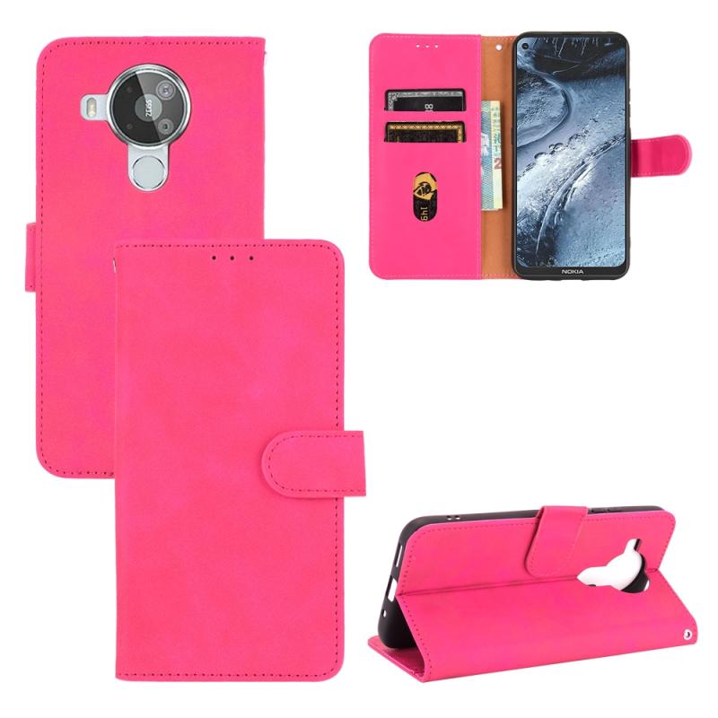 For Nokia 7.3 Solid Color Skin Feel Magnetic Buckle Horizontal Flip Calf Texture PU Leather Case with Holder & Card Slots & Wallet(Rose Red)