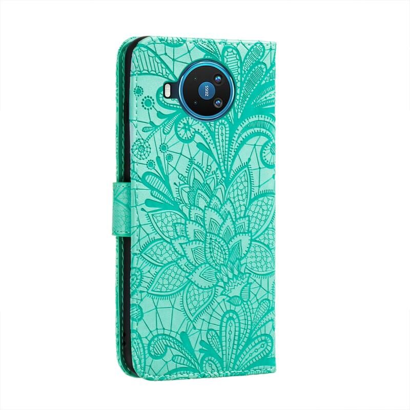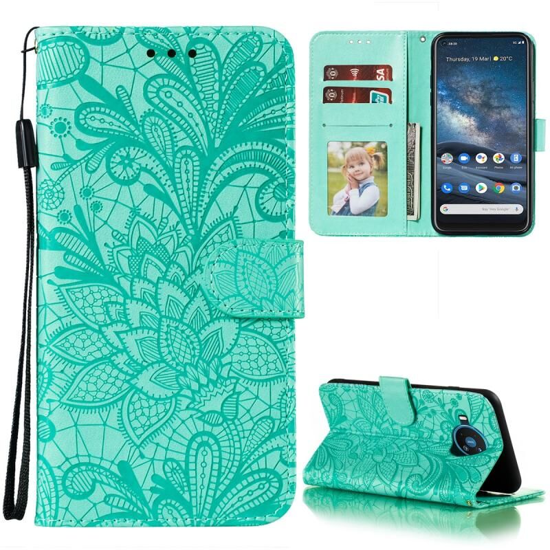 Για Nokia 8.3 5G Lace Flower ανάγλυφο μοτίβο οριζόντια Flip δερμάτινη θήκη με θήκη & υποδοχές για κάρτες & πορτοφόλι & πλαίσιο φωτογραφιών (πράσινο)