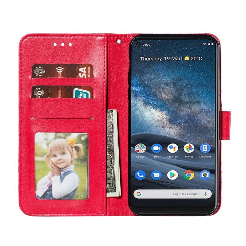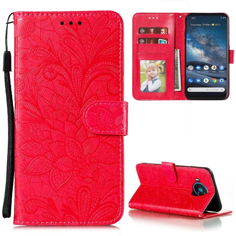 Για Nokia 8.3 5G Lace Flower ανάγλυφο μοτίβο οριζόντια Flip δερμάτινη θήκη με θήκη & υποδοχές για κάρτες & πορτοφόλι & κορνίζα φωτογραφιών (κόκκινο)