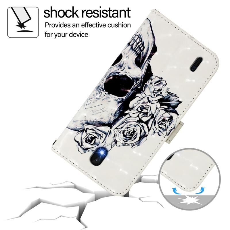Θήκη τηλεφώνου από δέρμα με οριζόντιο άνοιγμα και τρισδιάστατη ζωγραφική για Nokia C01 Plus / C1 2ης Έκδοσης (Κρανίο)