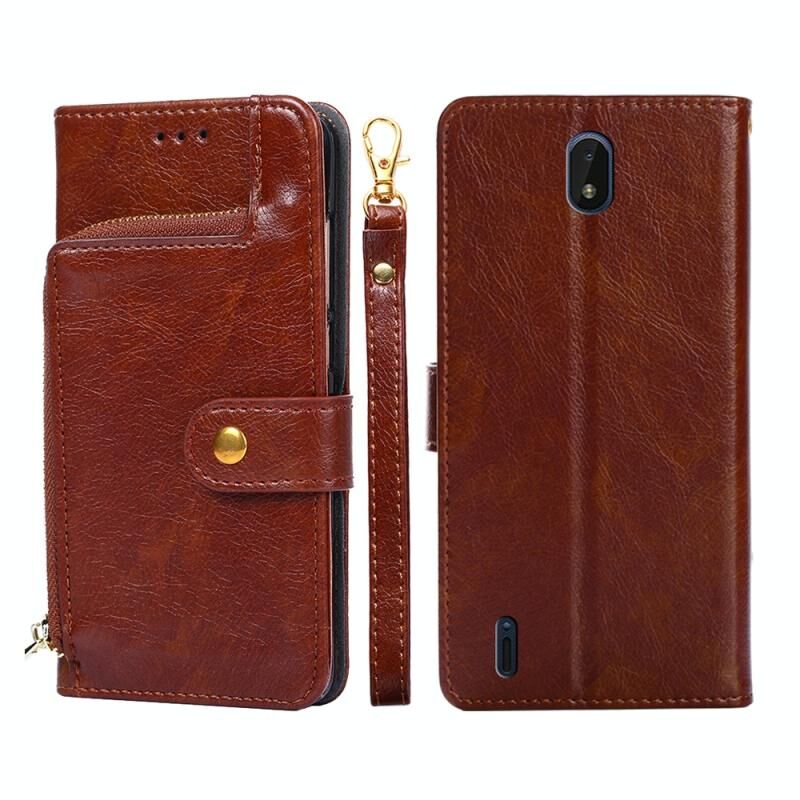 Για το Nokia C01 Plus/C1 2nd Edition φερμουάρ τσάντα PU + TPU οριζόντια Flip δέρμα τηλέφωνο υπόθεση (καφέ)