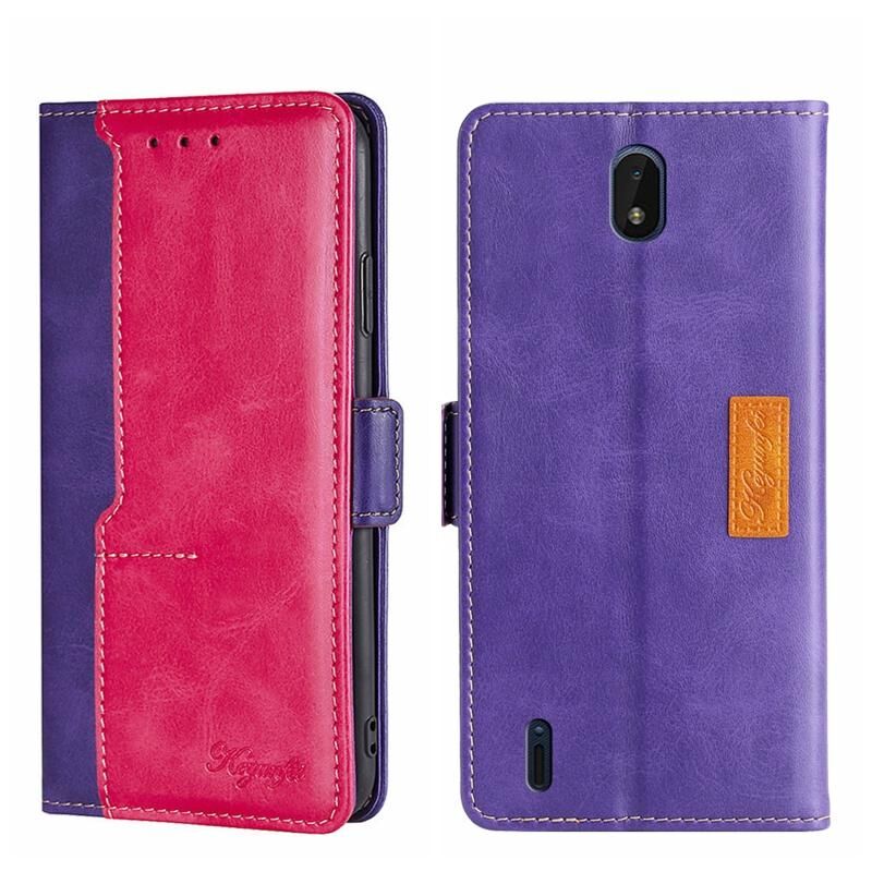 Για το Nokia C01 Plus / C1 2nd Editon αντίθεση χρώμα πλευρά πόρπη δερμάτινη θήκη τηλεφώνου (μοβ + Rose Red)