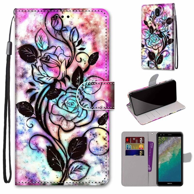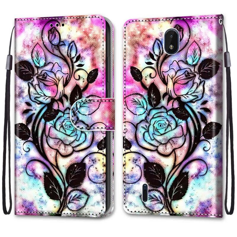 Θήκη τηλεφώνου δερμάτινη για Nokia C01 Plus με σχέδιο σταυρωτής υφής, οριζόντιο άνοιγμα, με βάση στήριξης, θήκες για κάρτες, πορτοφόλι & λουρί (Χρώμα: Κούφιο Λουλούδι στο κάτω μέρος)