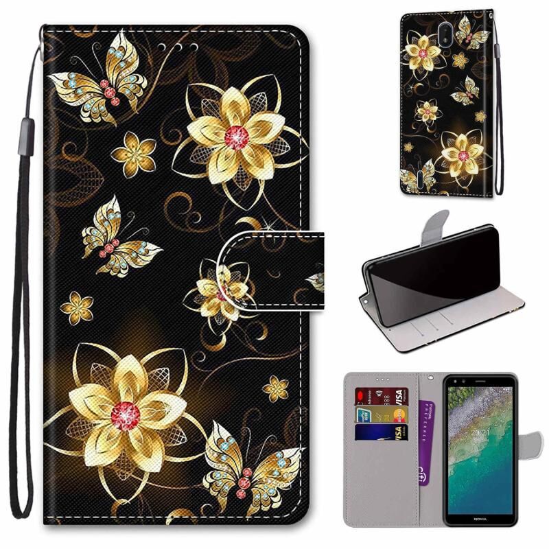 Θήκη τηλεφώνου δέρμα κατασκευής για Nokia C01 Plus με σχέδιο ζωγραφικής, υφή σταυρού, οριζόντιο άνοιγμα, βάση στήριξης, θήκες καρτών, πορτοφόλι & λουρί (Ροζ Λουλούδι, Γέφυρα του Πύργου).