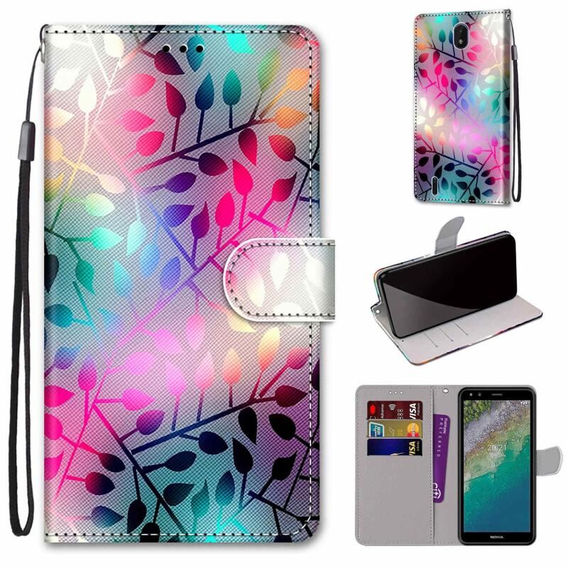 Θήκη τηλεφώνου δέρμα για Nokia C01 Plus με σχέδιο, υφή σταυρού, οριζόντιο άνοιγμα, βάση στήριξης, θήκες καρτών, πορτοφόλι & λουρί (διαφανές γυαλί)