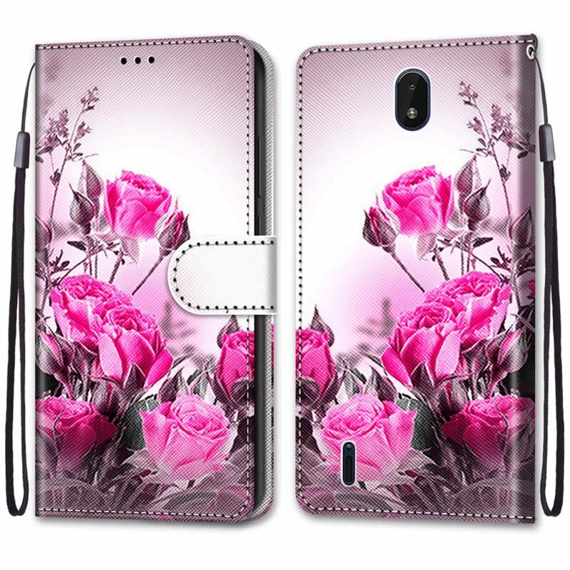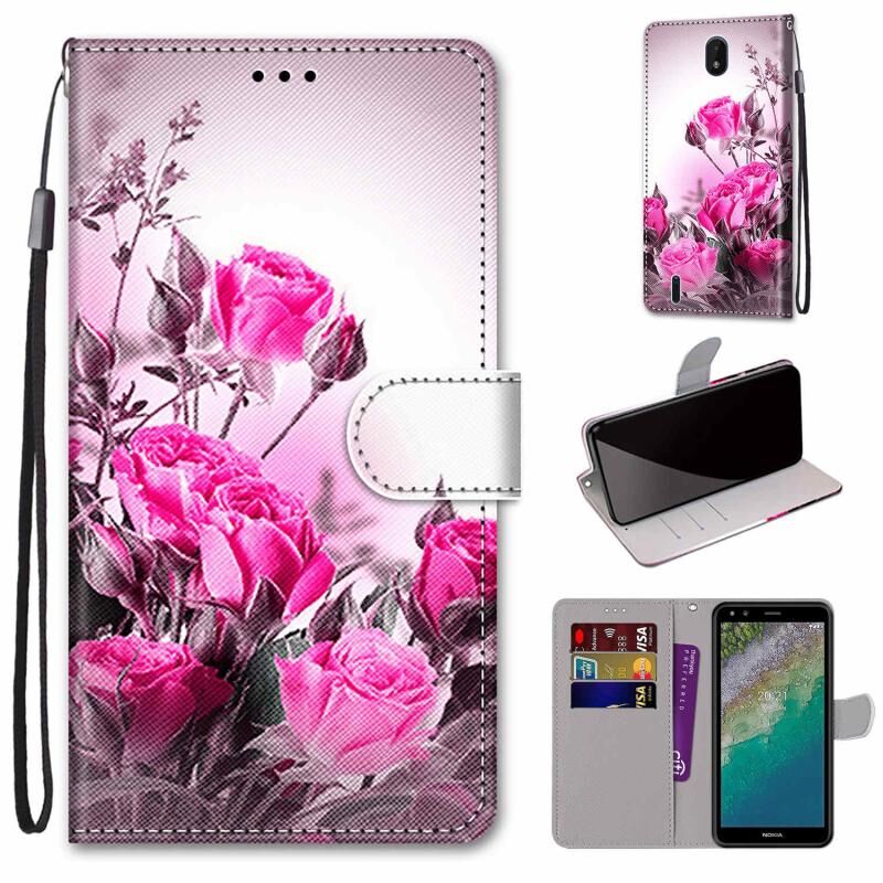 Θήκη τηλεφώνου δερμάτινη για Nokia C01 Plus με σχέδιο σταυρωτής υφής, οριζόντιο άνοιγμα, με βάση στήριξης, θήκες για κάρτες, πορτοφόλι & λουρί (Άγριο Τριαντάφυλλο)