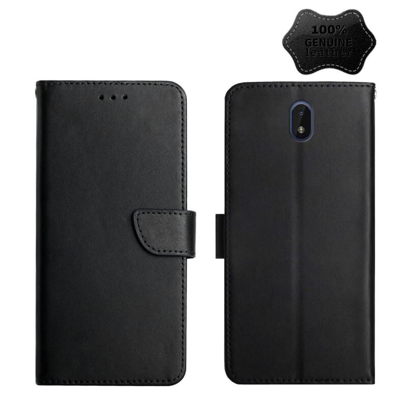 Θήκη τηλεφώνου οριζόντιας αναδίπλωσης από γνήσιο δέρμα για Nokia C01 Plus, ανθεκτική στα δακτυλικά αποτυπώματα (Μαύρο)