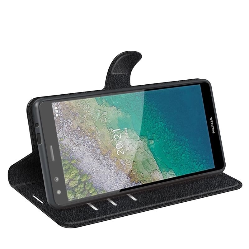 Για Nokia C01 Plus Litchi Υφή Οριζόντια Flip προστατευτική θήκη με υποδοχή & υποδοχές καρτών & πορτοφόλι (μαύρο)