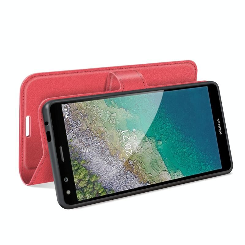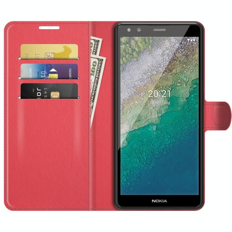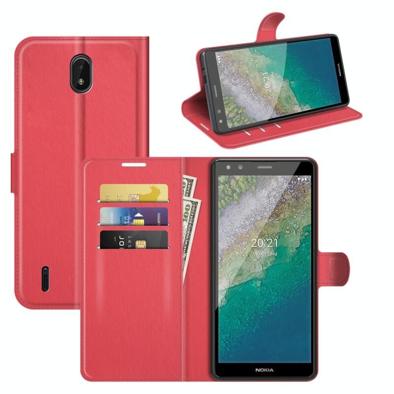 Για Nokia C01 Plus Litchi Υφή Οριζόντια Flip προστατευτική θήκη με υποδοχή & υποδοχές για κάρτες & πορτοφόλι (κόκκινο)