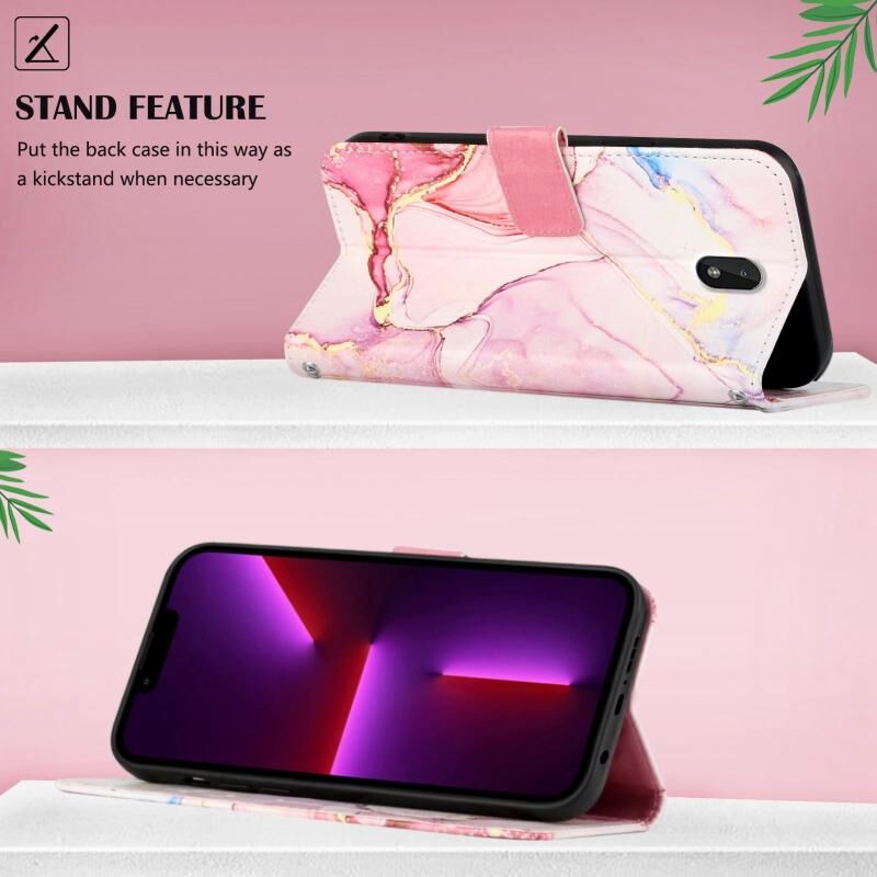 Θήκη τηλεφώνου από δέρμα με σχέδιο μάρμαρου για Nokia C01 Plus PT003 (Ροζ, Μωβ, Χρυσό LS001)
