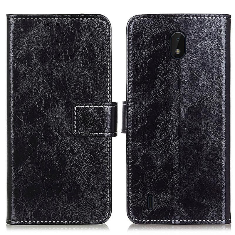 Για Nokia C01 Plus Ρετρό Crazy Horse Υφή οριζόντια Flip δερμάτινη θήκη με θήκη & υποδοχές καρτών & πλαίσιο φωτογραφιών & πορτοφόλι (μαύρο)
