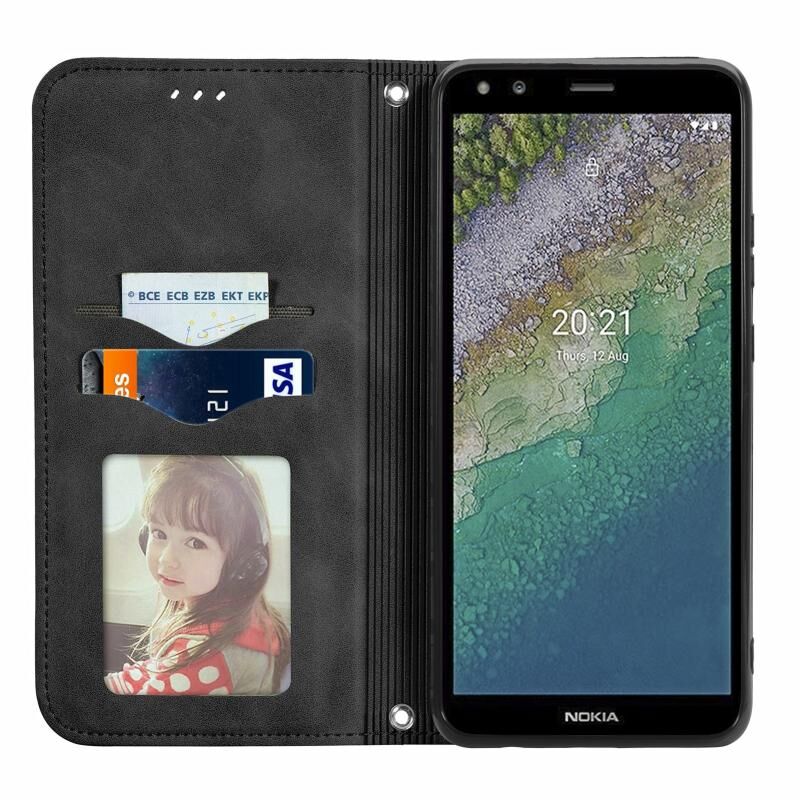 Για το Nokia C01 Plus Retro Skin Feel Business μαγνητική οριζόντια Flip δερμάτινη θήκη με θήκη & υποδοχές καρτών & πορτοφόλι & κορνίζα φωτογραφιών (Μαύρο)