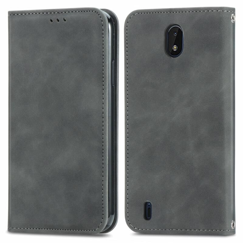 Για το Nokia C01 Plus Retro Skin Feel Business μαγνητική οριζόντια Flip δερμάτινη θήκη με θήκη & υποδοχές καρτών & πορτοφόλι & κορνίζα φωτογραφιών (γκρι)