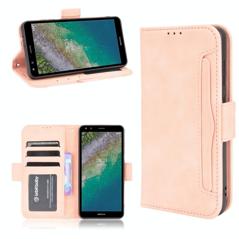 For Nokia C01 Plus Skin Feel Calf Pattern Horizontal Flip Leather Case with Holder & Card Slots & Photo Frame(Pink)