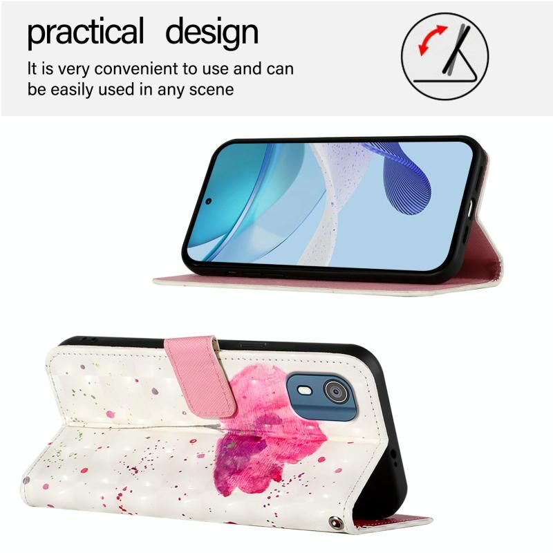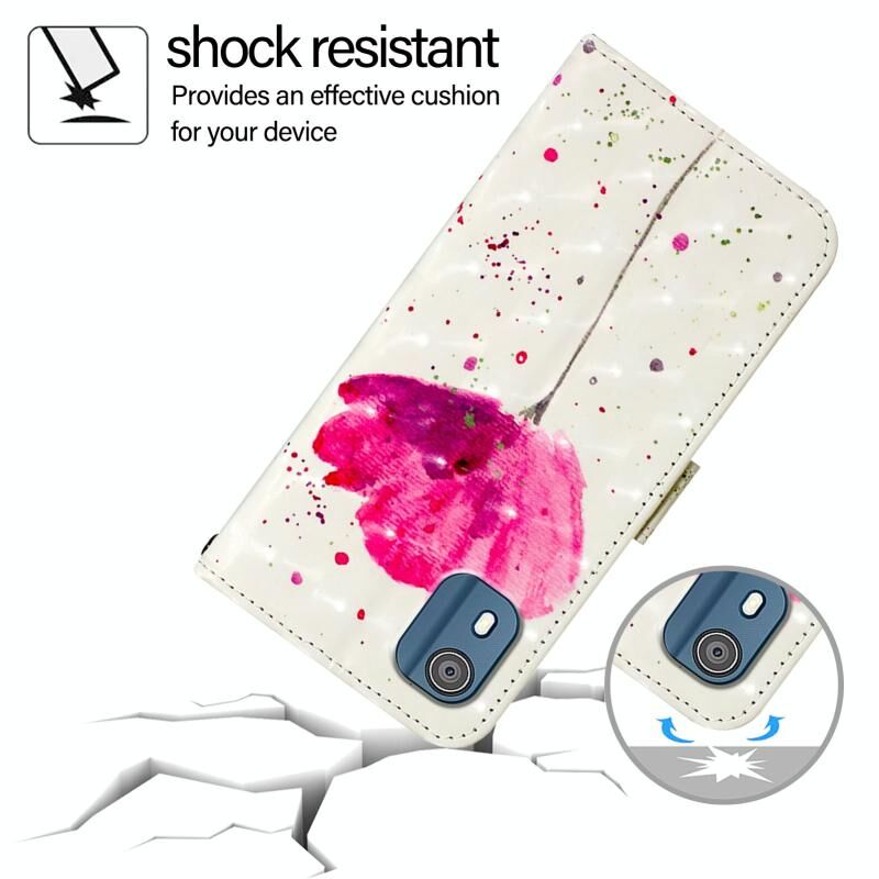 Θήκη τηλεφώνου από δέρμα με οριζόντιο άνοιγμα και τρισδιάστατη ζωγραφική για Nokia C02 (Λουλούδι)