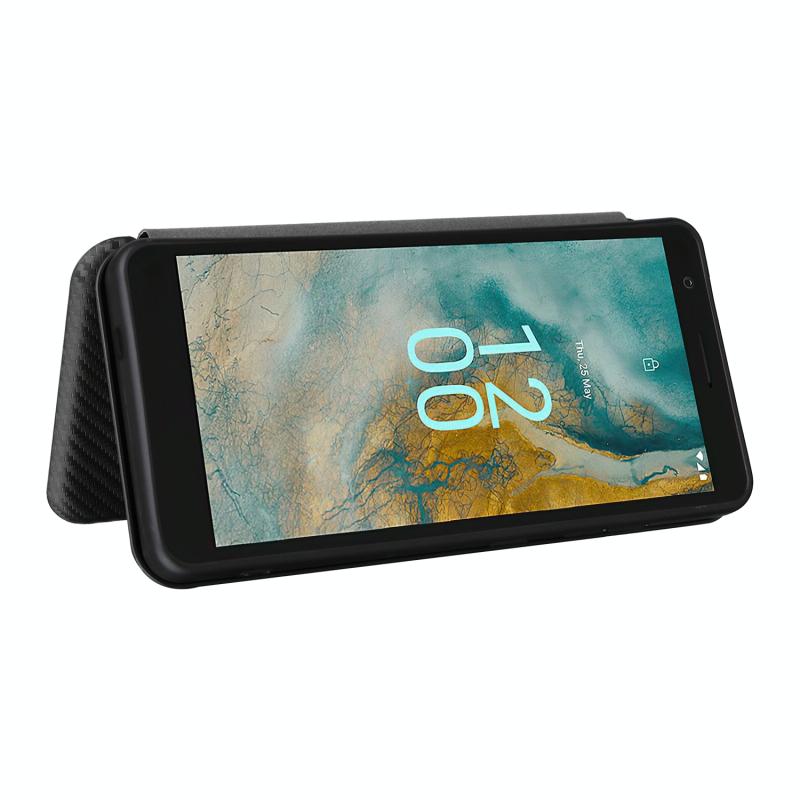 Θήκη τηλεφώνου από δέρμα με υφή ανθρακονημάτων για Nokia C02 (Καφέ)
