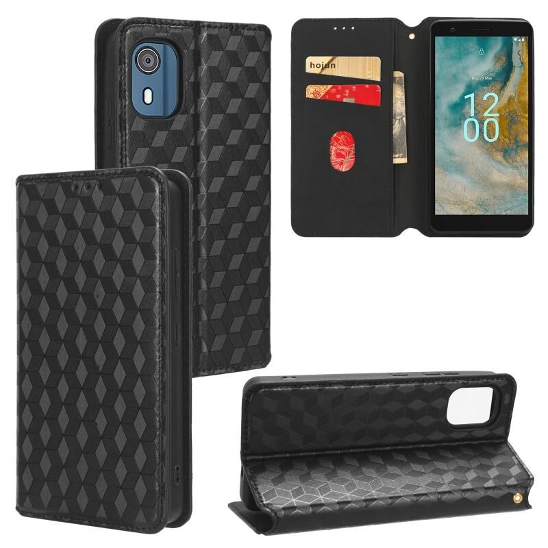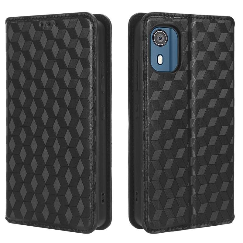 For Nokia C02 Cubic Grid Texture Flip Leather Phone Case(Black)
