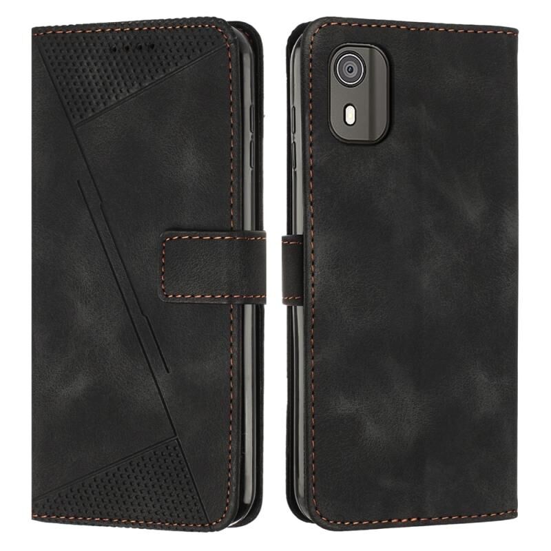Για Nokia C02 Dream Triangle Δερμάτινη θήκη τηλεφώνου με κορδόνι (Μαύρο)