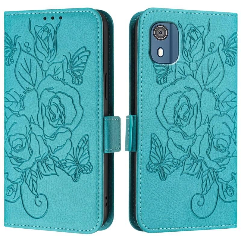 For Nokia C02 Embossed Rose RFID Anti-theft Leather Phone Case(Light Blue)