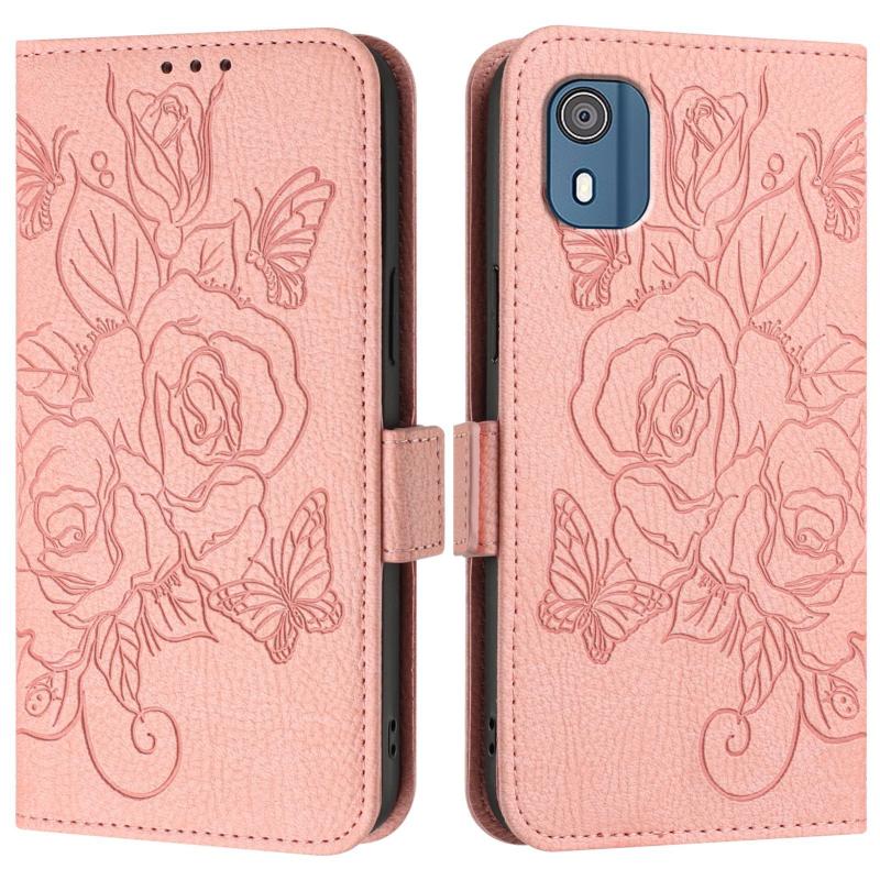For Nokia C02 Embossed Rose RFID Anti-theft Leather Phone Case(Pink)