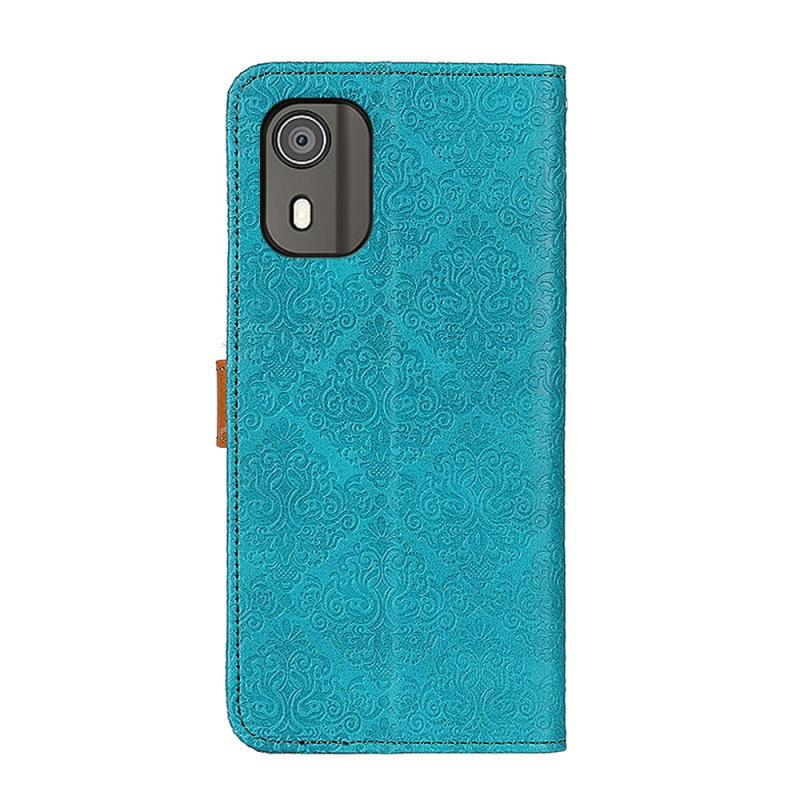 Θήκη τηλεφώνου από δέρμα με ανάγλυφο ευρωπαϊκό λουλουδάτο σχέδιο για Nokia C02 (Μαύρο)