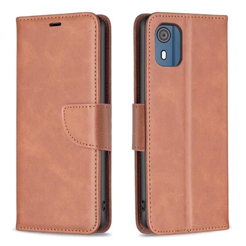 Για Nokia C02 Lambskin υφή καθαρό χρώμα καθαρό χρώμα Flip δέρμα τηλέφωνο υπόθεση (καφέ)