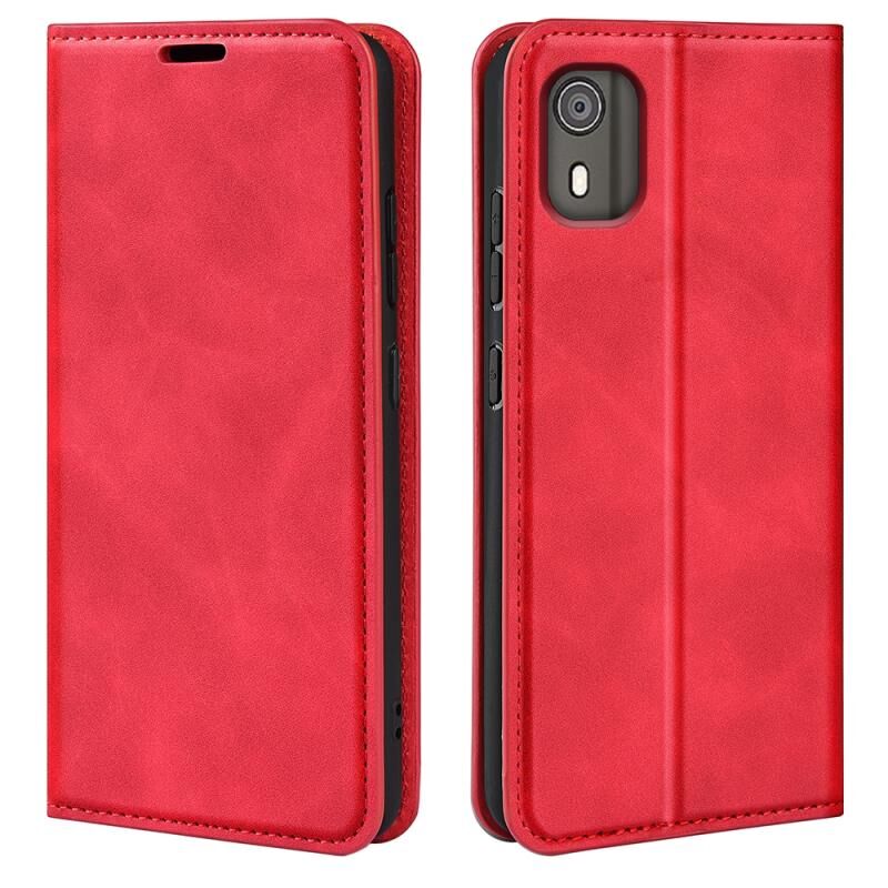 Για Nokia C02 Retro-skin Μαγνητική δερμάτινη θήκη τηλεφώνου αναρρόφησης (κόκκινο)