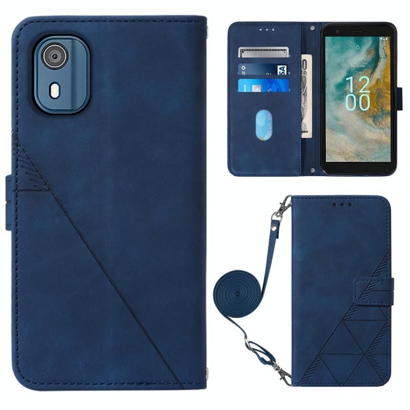 Για το Nokia C02 TA-1522 Crossbody 3D ανάγλυφο Flip δερμάτινη θήκη τηλεφώνου (μπλε)