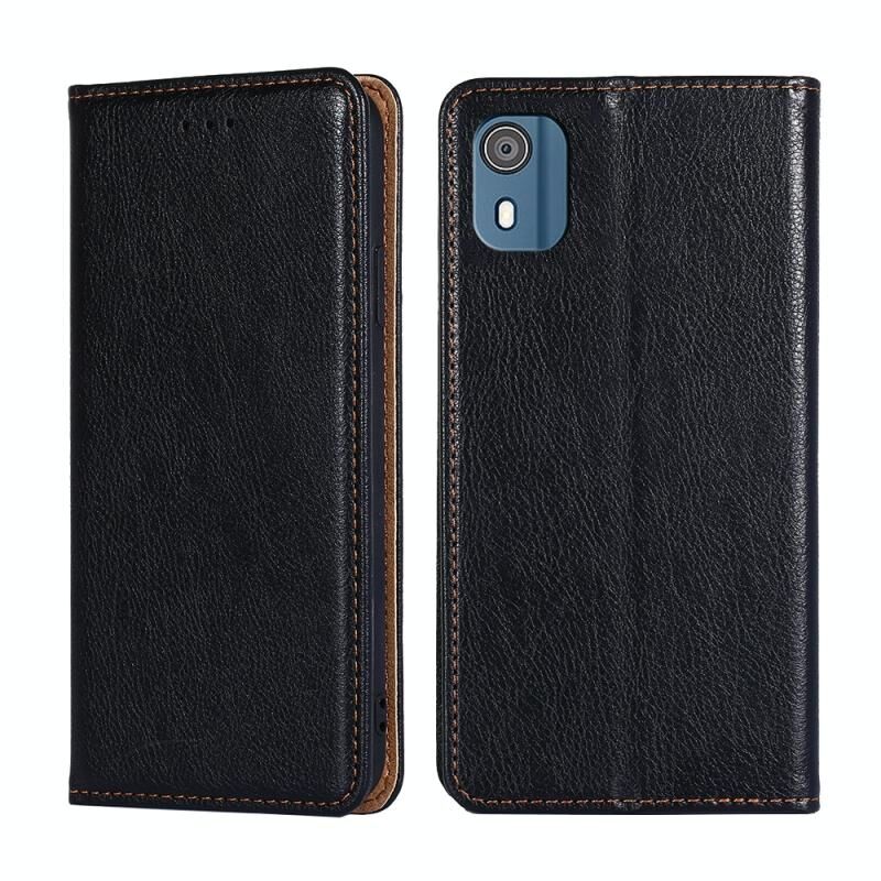 Για το Nokia C02 TA-1522 Γυαλιστερό λάδι στερεό χρώμα μαγνητική δερμάτινη θήκη τηλεφώνου (μαύρο)