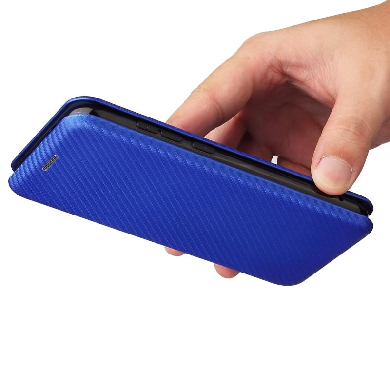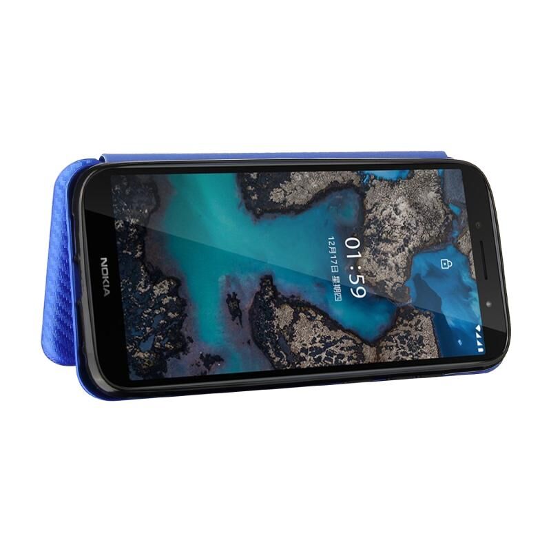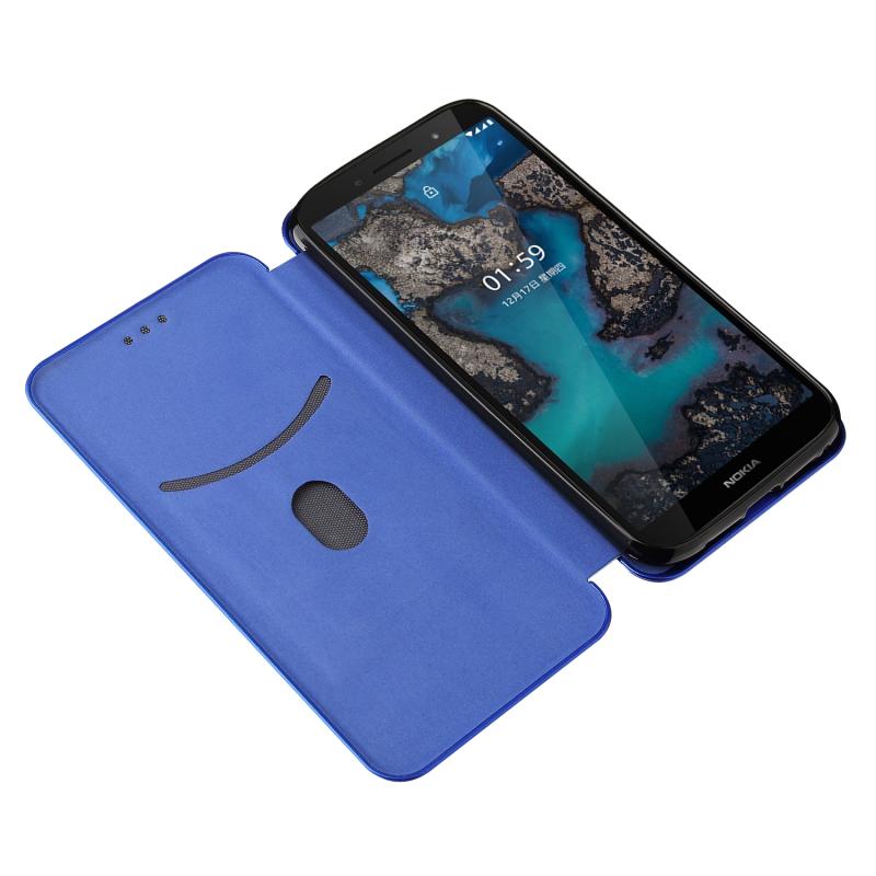 For Nokia C1 Plus Carbon Fiber Texture Horizontal Flip TPU + PC + PU Leather Case with Card Slot(Blue)