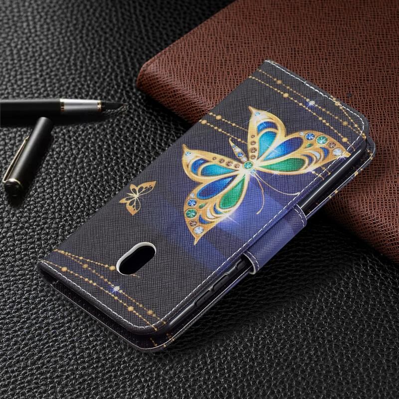 Θήκη δέρματος οριζόντιας αναδίπλωσης με σχέδιο πολύχρωμης ζωγραφικής για Nokia C1 Plus με βάση & υποδοχές καρτών & πορτοφόλι (Μεγάλη Πεταλούδα)