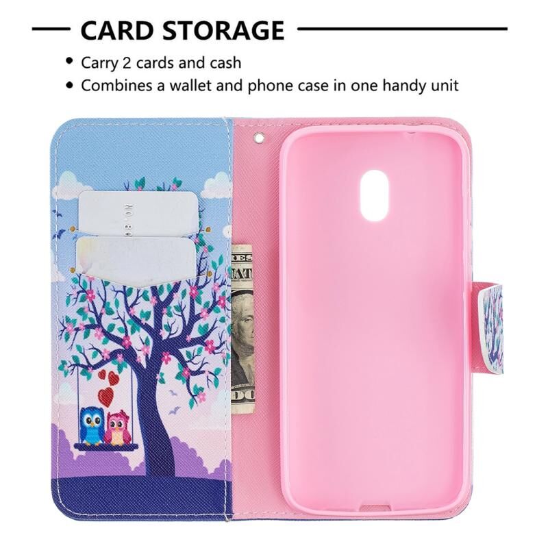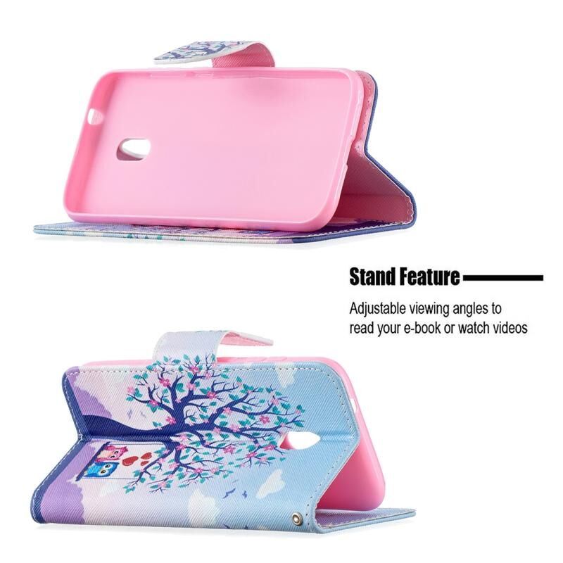 Θήκη δέρματος οριζόντιας αναδίπλωσης με σχέδιο πολύχρωμου σχεδίου για Nokia C1 Plus με βάση & υποδοχές καρτών & πορτοφόλι (Κουκουβάγια)
