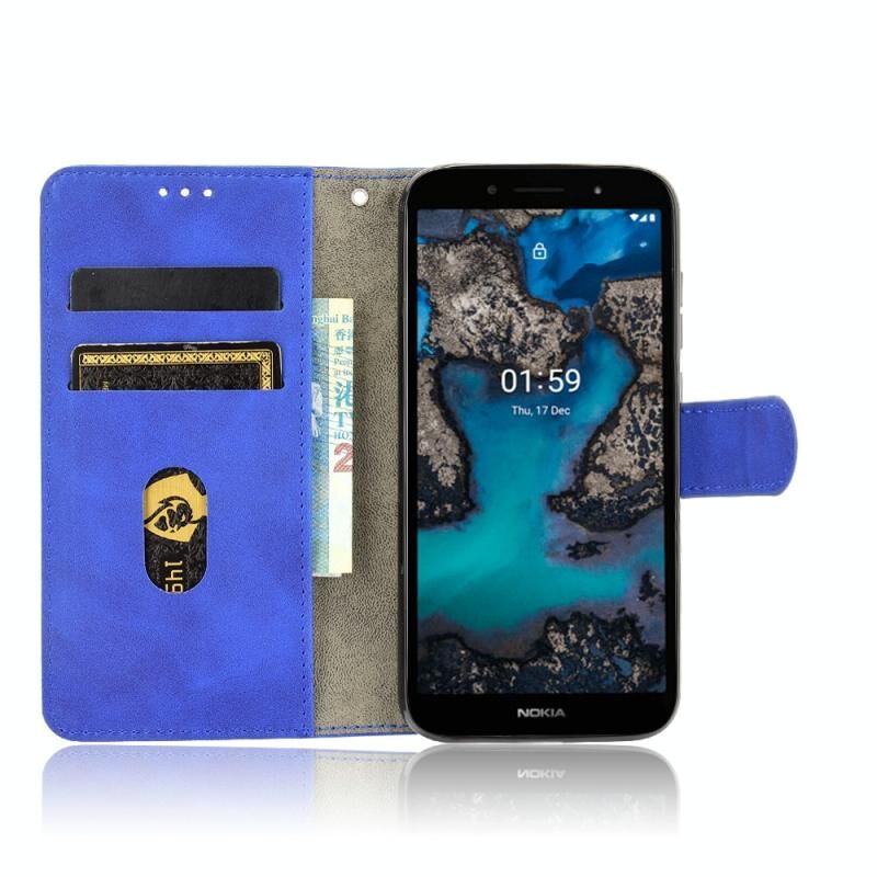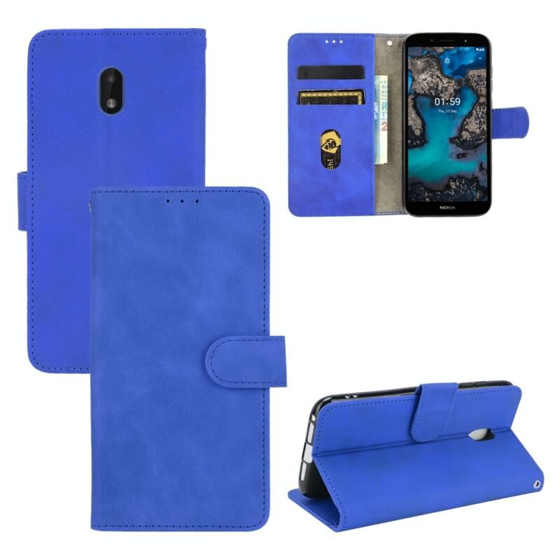 For Nokia C1 Plus Solid Color Skin Feel Magnetic Buckle Horizontal Flip Calf Texture PU Leather Case with Holder & Card Slots & Wallet(Blue)