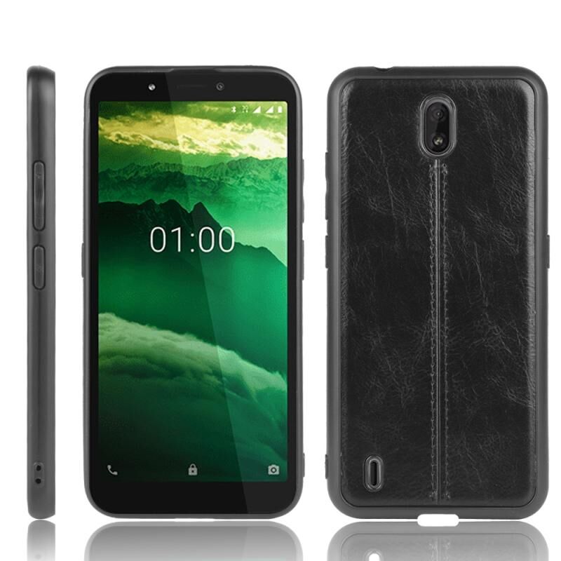 For Nokia C1 Shockproof Sewing Cow Pattern Skin PC + PU + TPU Case(Black)