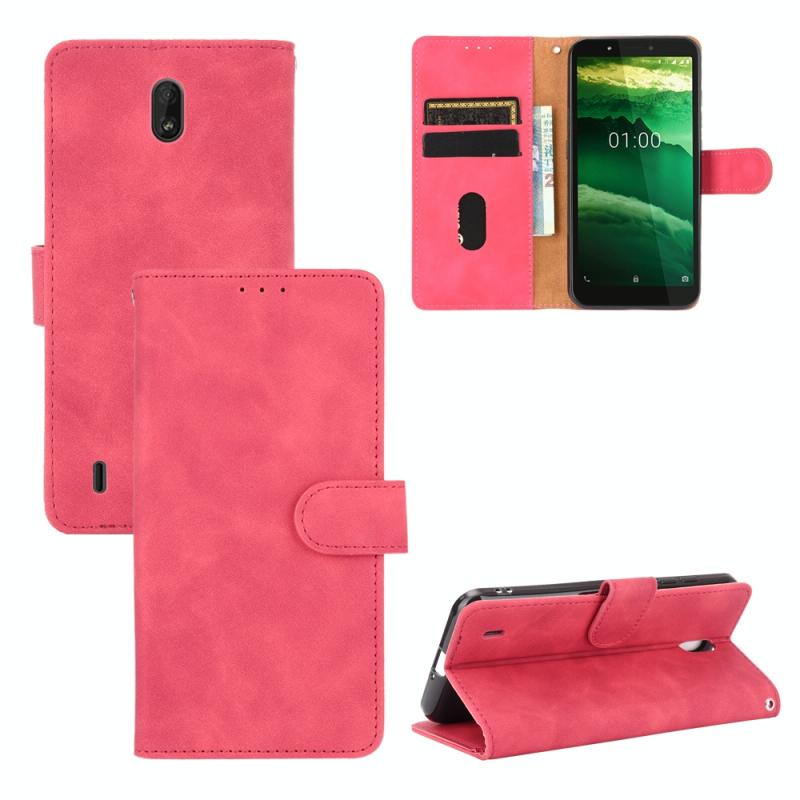 For Nokia C1 Solid Color Skin Feel Magnetic Buckle Horizontal Flip Calf Texture PU Leather Case with Holder & Card Slots & Wallet(Rose Red)