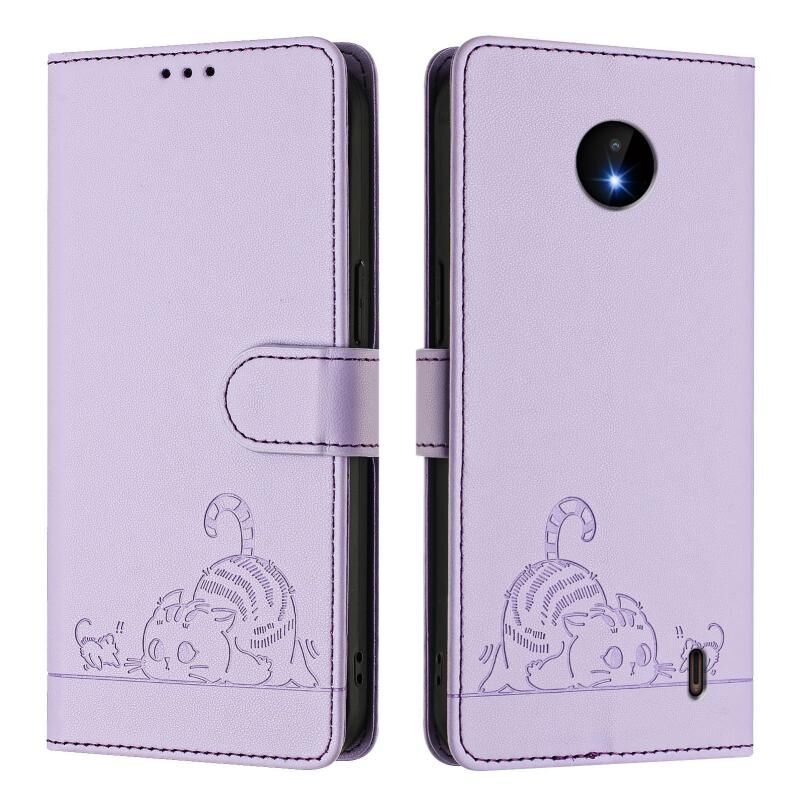 For Nokia C10 / C20 Cat Rat Embossed RFID Leather Phone Case with Lanyard(Purple)
