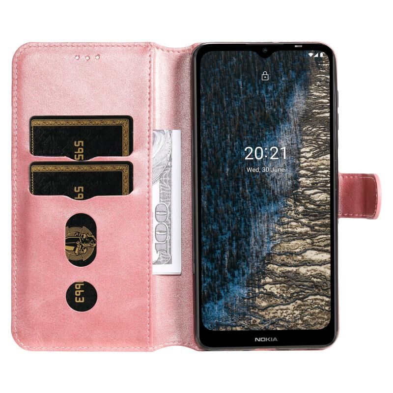 Για το Nokia C10 / C20 Κλασική θήκη από δέρμα μοσχαριού PU + TPU Οριζόντια θήκη με θήκη για κάρτες & υποδοχές & πορτοφόλι (ροζ χρυσό)