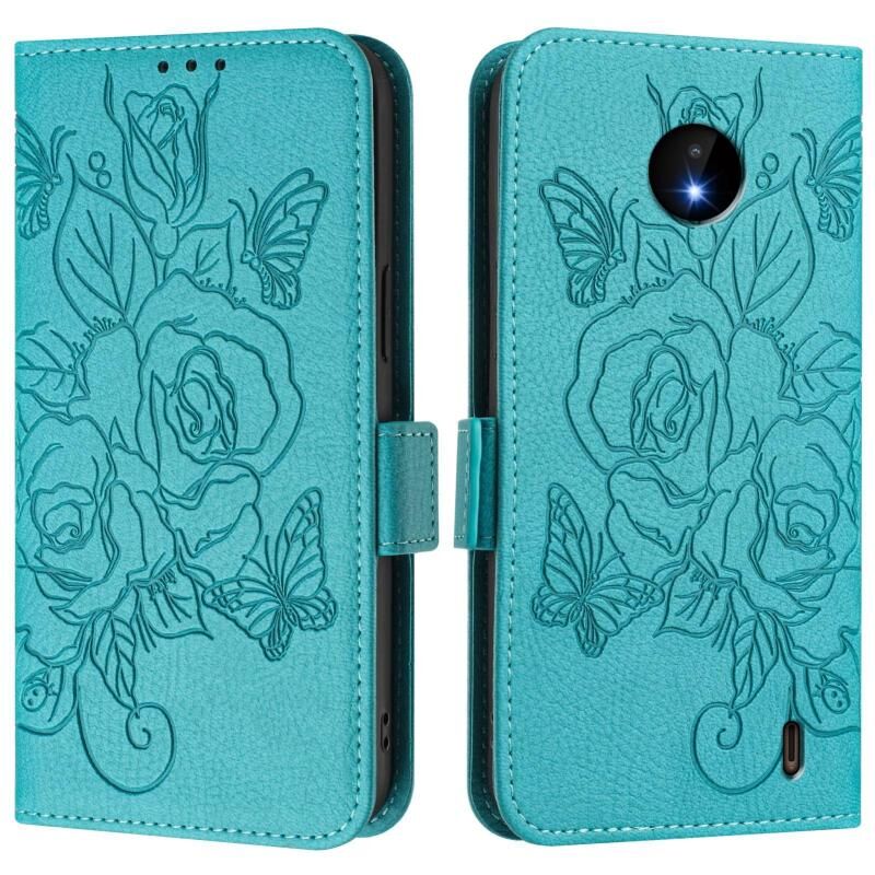 For Nokia C10 / C20 Embossed Rose RFID Anti-theft Leather Phone Case(Light Blue)