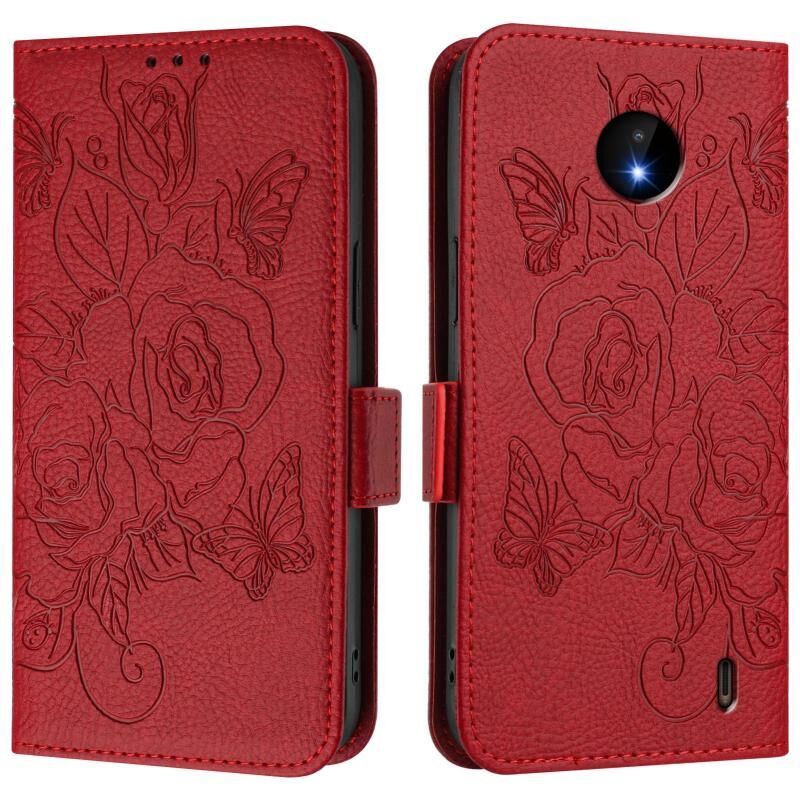 For Nokia C10 / C20 Embossed Rose RFID Anti-theft Leather Phone Case(Red)