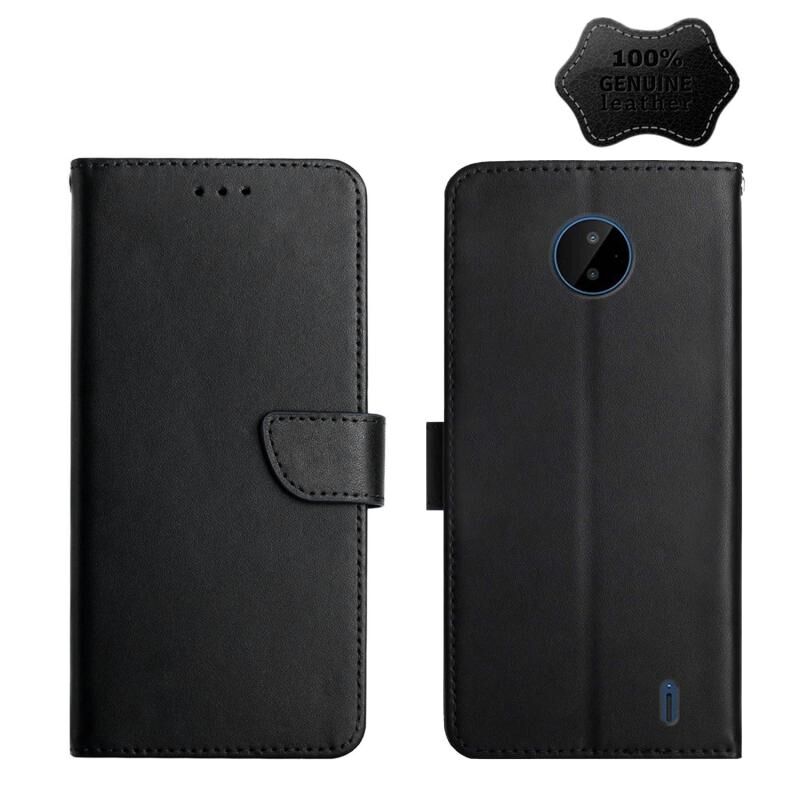 Θήκη τηλεφώνου οριζόντιας αναδίπλωσης από γνήσιο δέρμα για Nokia C10 / C20, ανθεκτική στα δακτυλικά αποτυπώματα (Μαύρο)