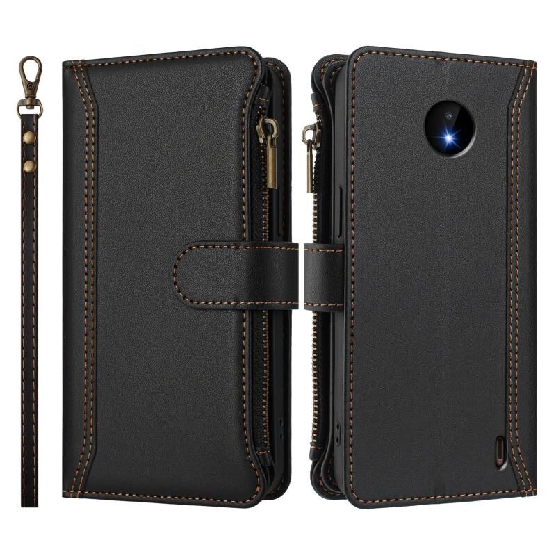 For Nokia C10 / C20 Magnetic Closure 9 Card Slots Zipper Leather Case with Hand Strap(Black)