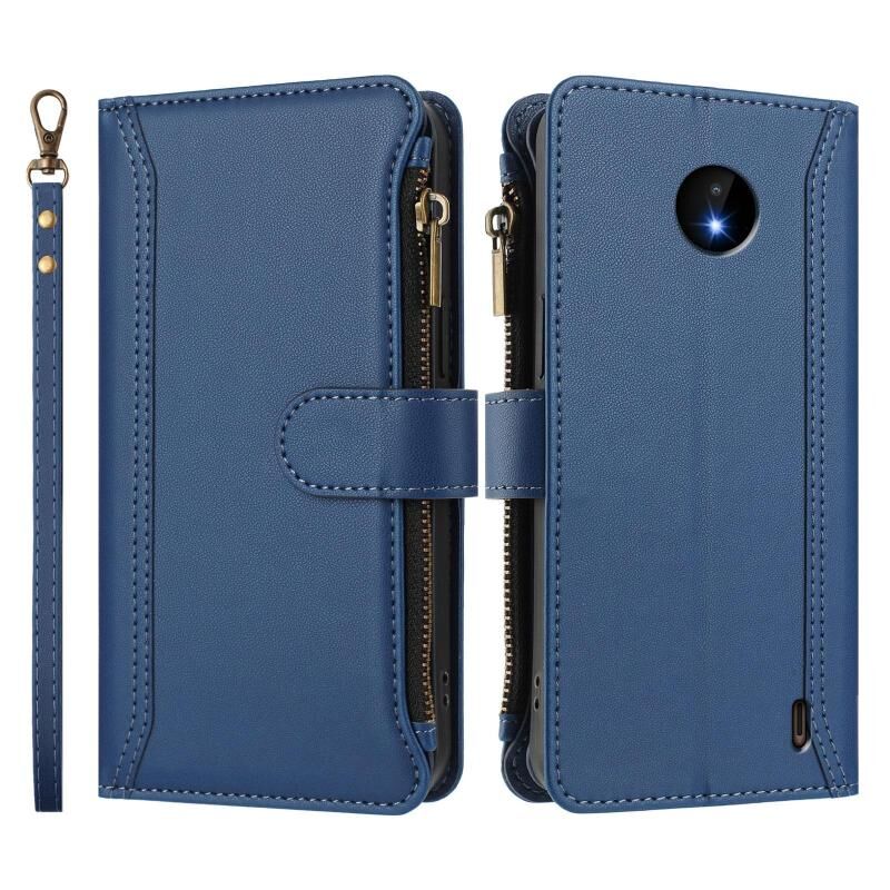 For Nokia C10 / C20 Magnetic Closure 9 Card Slots Zipper Leather Case with Hand Strap(Dark Blue)