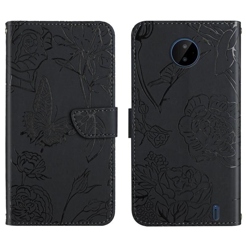Θήκη τηλεφώνου από δέρμα με ανάγλυφο σχέδιο πεταλούδας και παιώνιας για Nokia C10 / C20 (Κόκκινο)