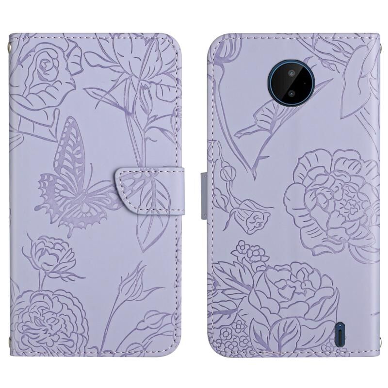 Θήκη τηλεφώνου από δέρμα με ανάγλυφο σχέδιο πεταλούδας και παιώνιας για Nokia C10 / C20 (Κόκκινο)