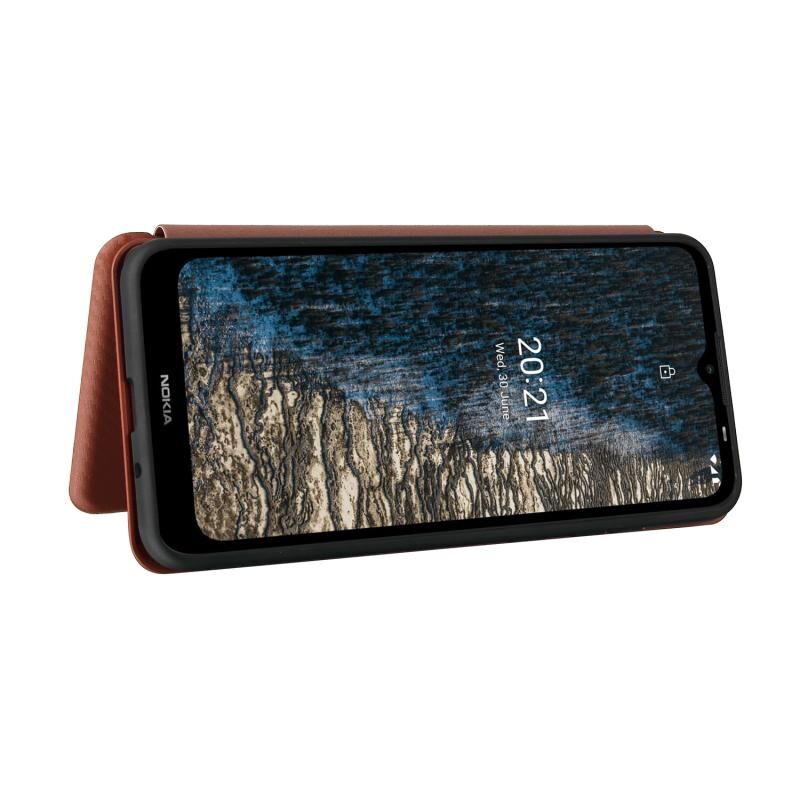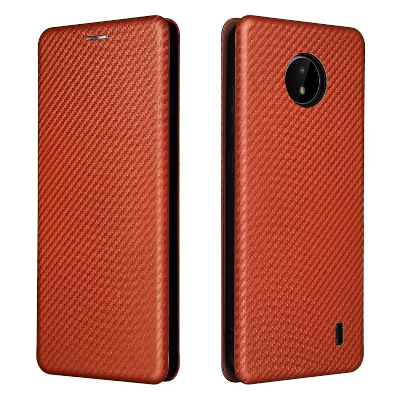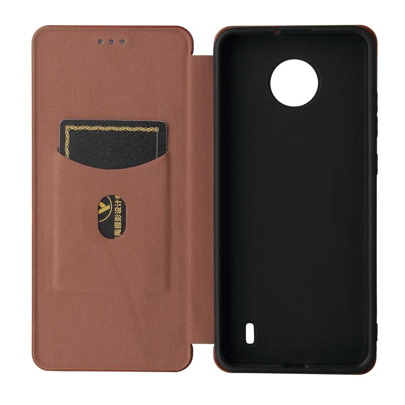 For Nokia C10 Carbon Fiber Texture Horizontal Flip TPU + PC + PU Leather Case with Card Slot(Brown)