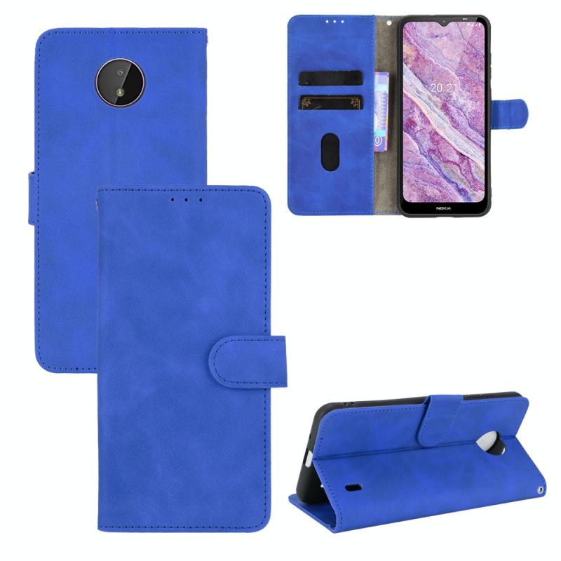 For Nokia C10 Solid Color Skin Feel Magnetic Buckle Horizontal Flip Calf Texture PU Leather Case with Holder & Card Slots & Wallet(Blue)