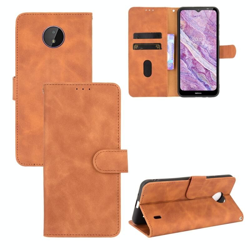 For Nokia C10 Solid Color Skin Feel Magnetic Buckle Horizontal Flip Calf Texture PU Leather Case with Holder & Card Slots & Wallet(Brown)
