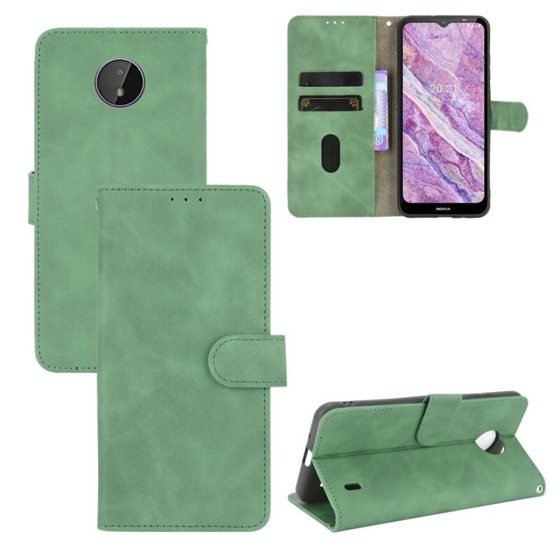 For Nokia C10 Solid Color Skin Feel Magnetic Buckle Horizontal Flip Calf Texture PU Leather Case with Holder & Card Slots & Wallet(Green)