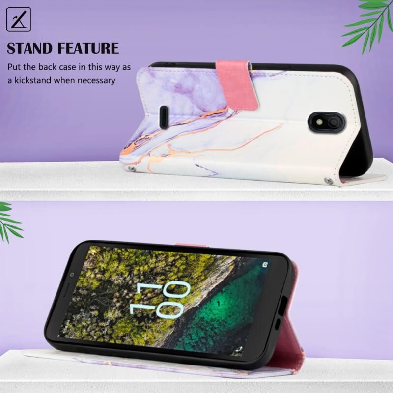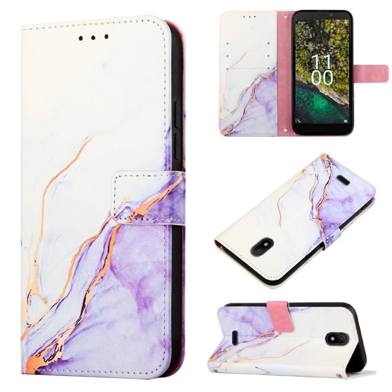 Θήκη τηλεφώνου από δέρμα με σχέδιο μαρμάρου για Nokia C100 PT003 (Ροζ, Μωβ, Χρυσό LS001)