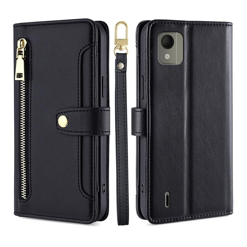 Για Nokia C110 4G Lite Πρόβατο Υφή Cross-body φερμουάρ πορτοφόλι δερμάτινη θήκη τηλεφώνου (μαύρο)